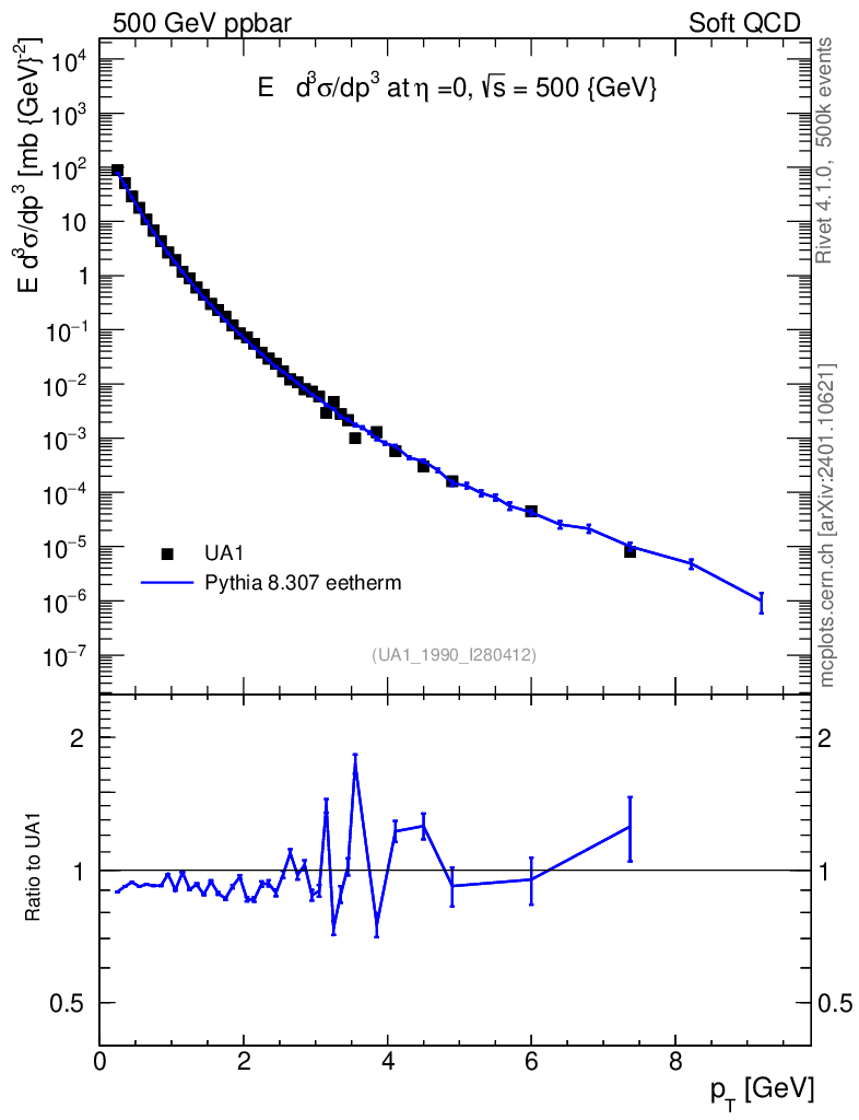 Plot of pt in 500 GeV ppbar collisions