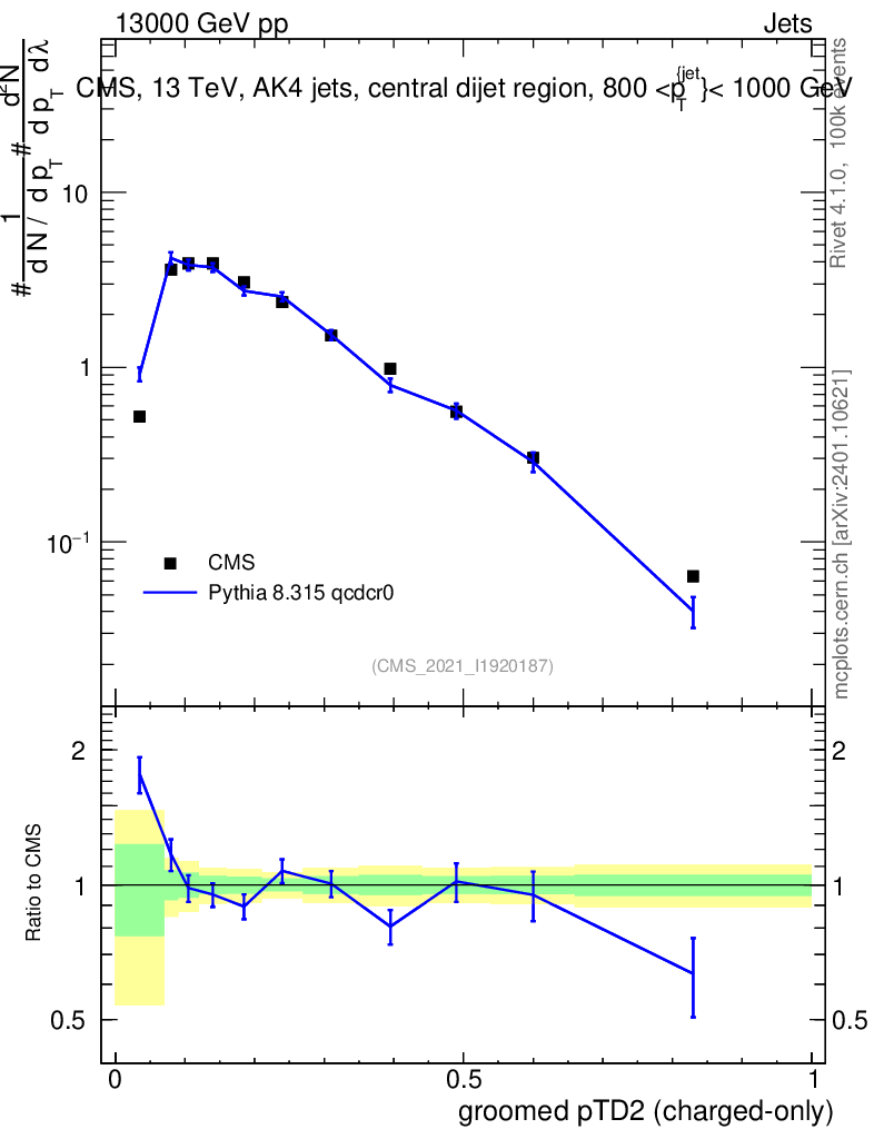 Lines: data, pythia8 8.315 qcdcr0 |