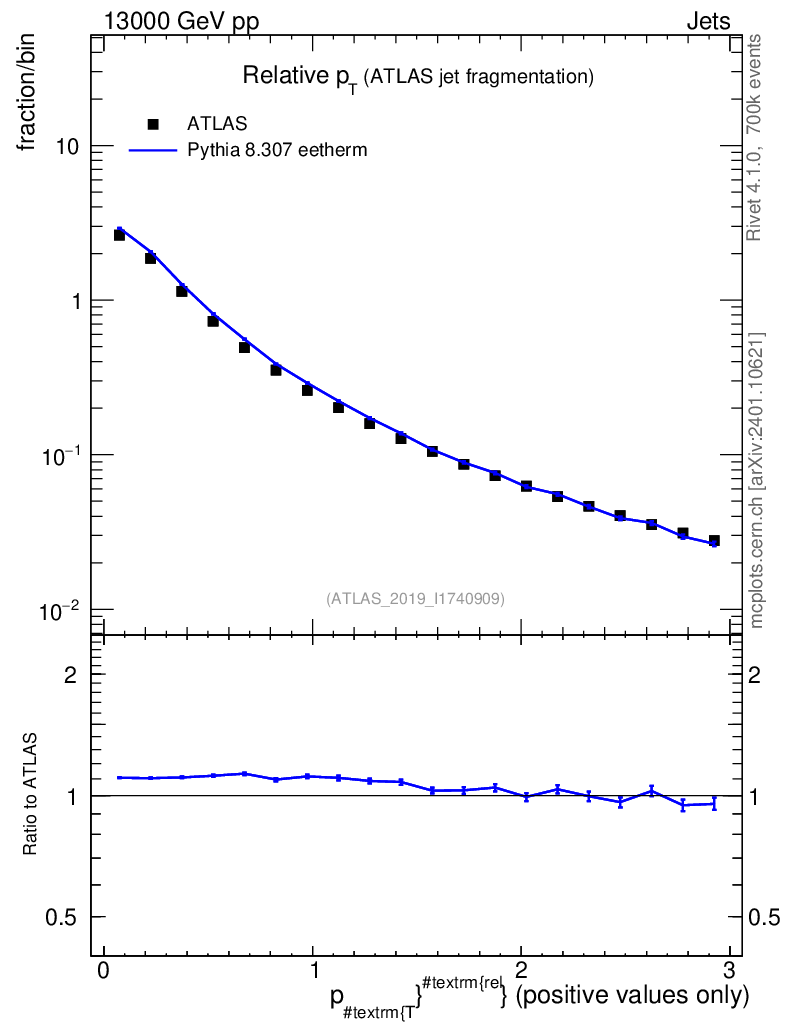 Lines: data, pythia8 8.307 eetherm |