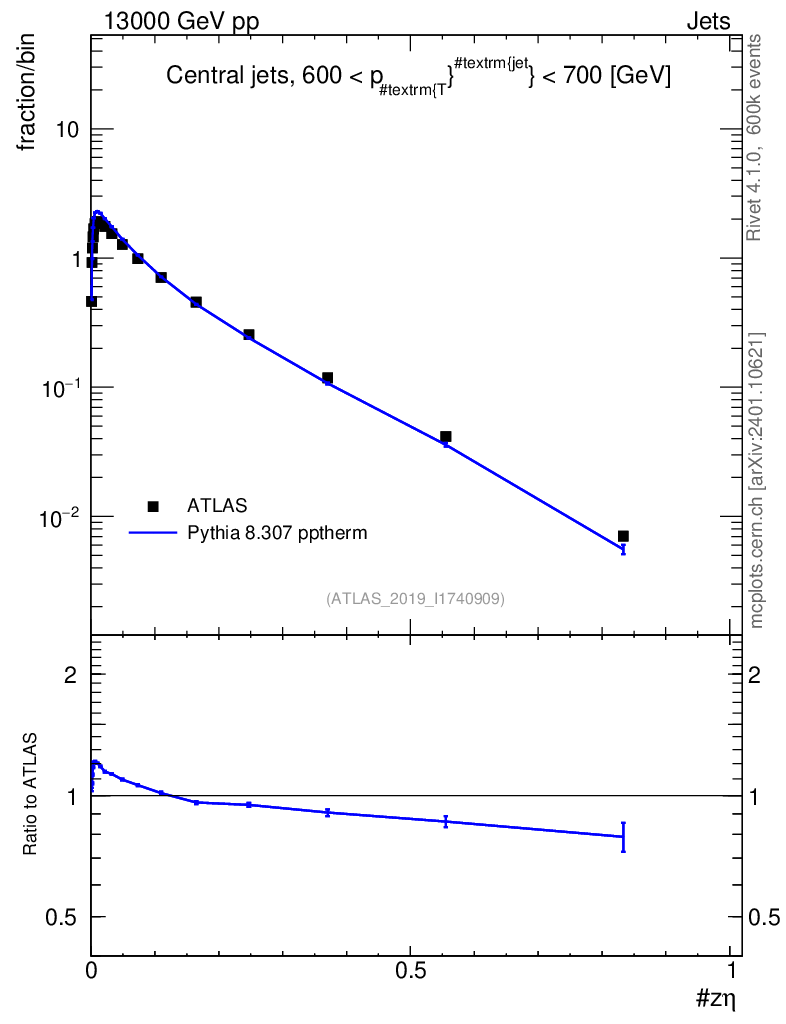 Lines: data, pythia8 8.307 pptherm |