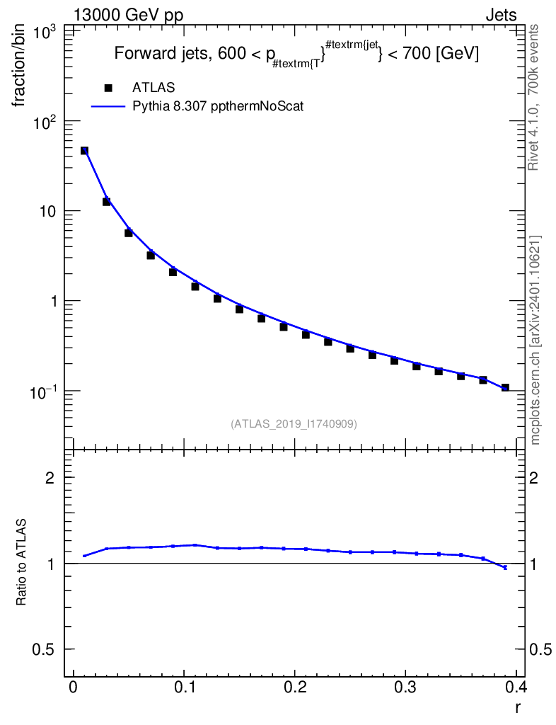 Lines: data, pythia8 8.307 ppthermNoScat |