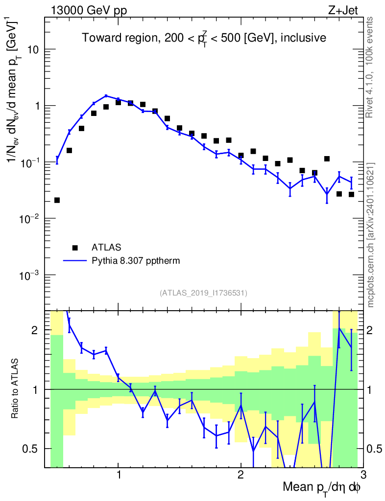 Lines: data, pythia8 8.307 pptherm |
