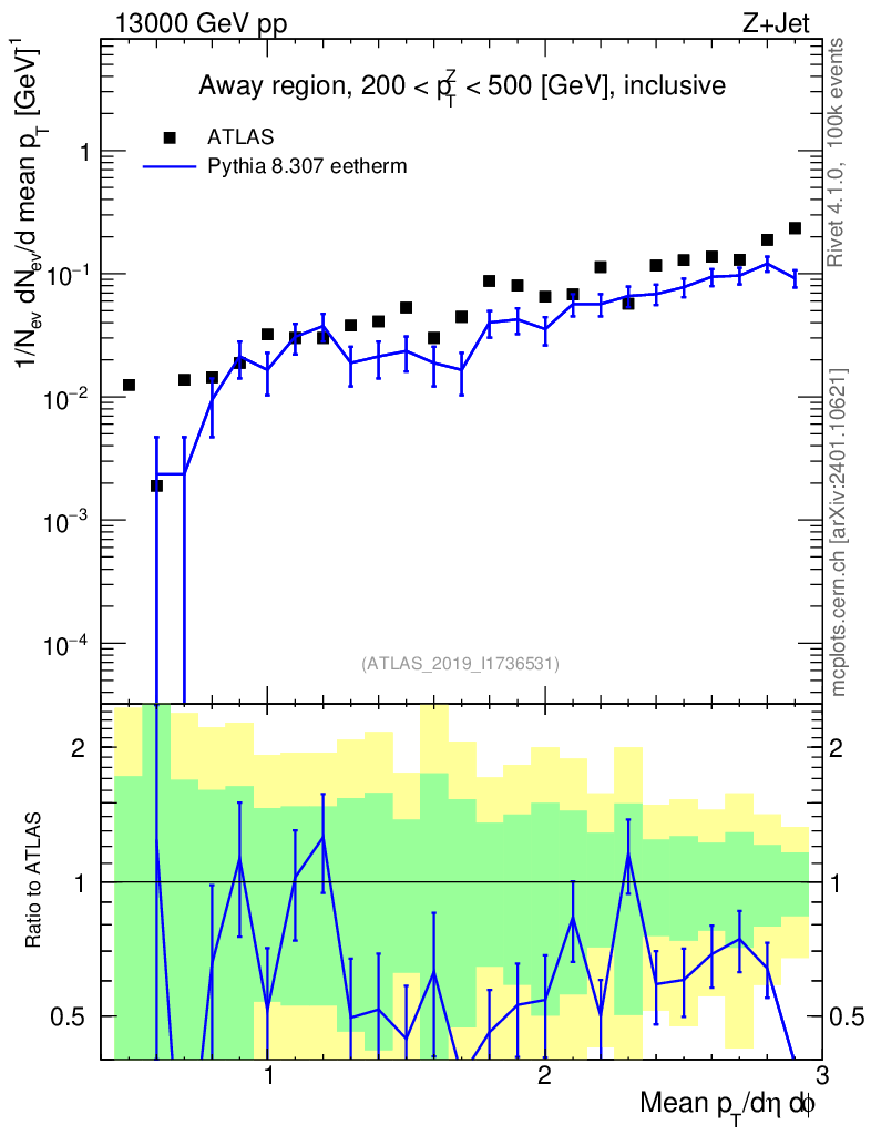 Lines: data, pythia8 8.307 eetherm |