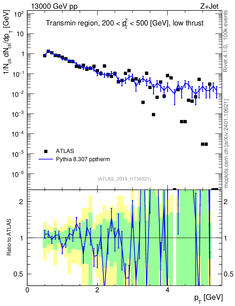 Lines: data, pythia8 8.307 pptherm |