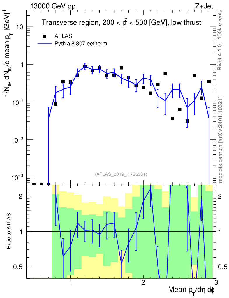 Lines: data, pythia8 8.307 eetherm |