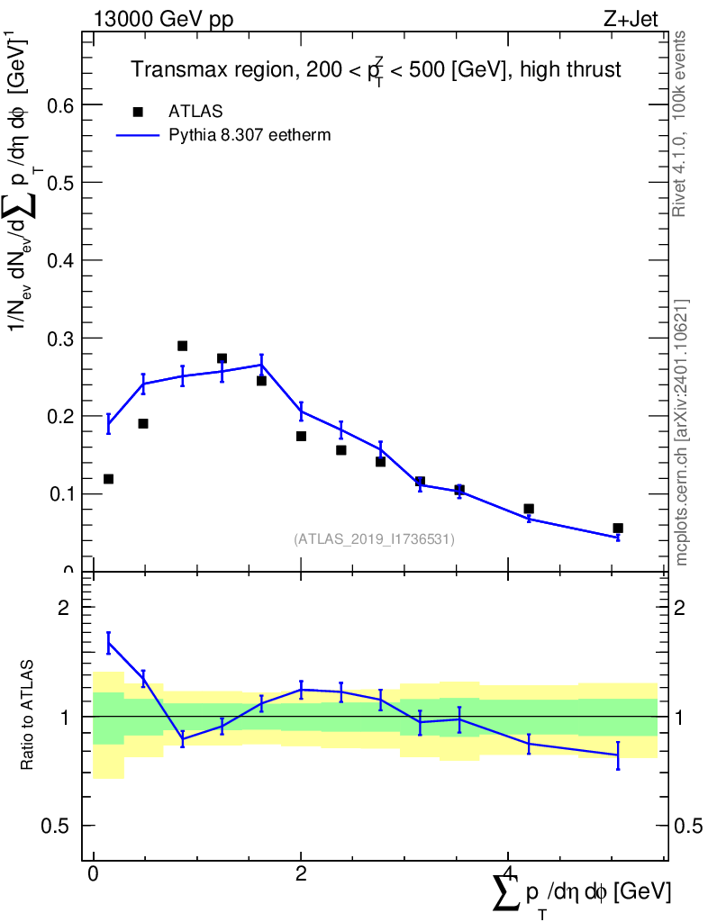 Lines: data, pythia8 8.307 eetherm |