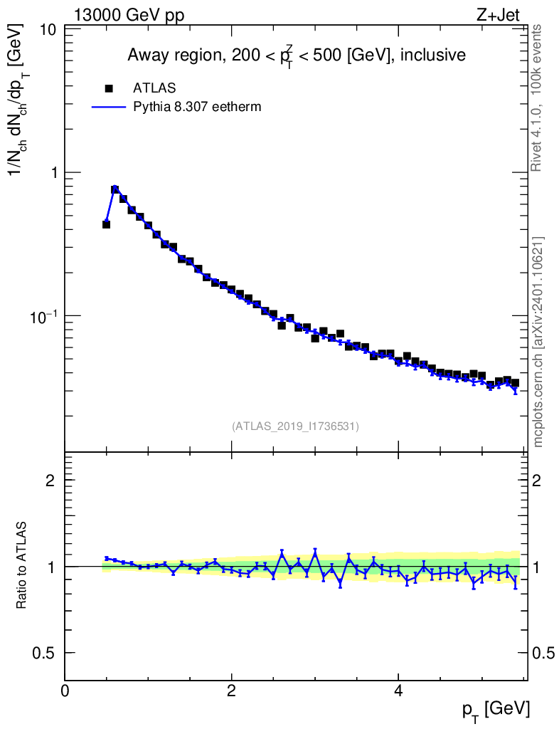 Lines: data, pythia8 8.307 eetherm |