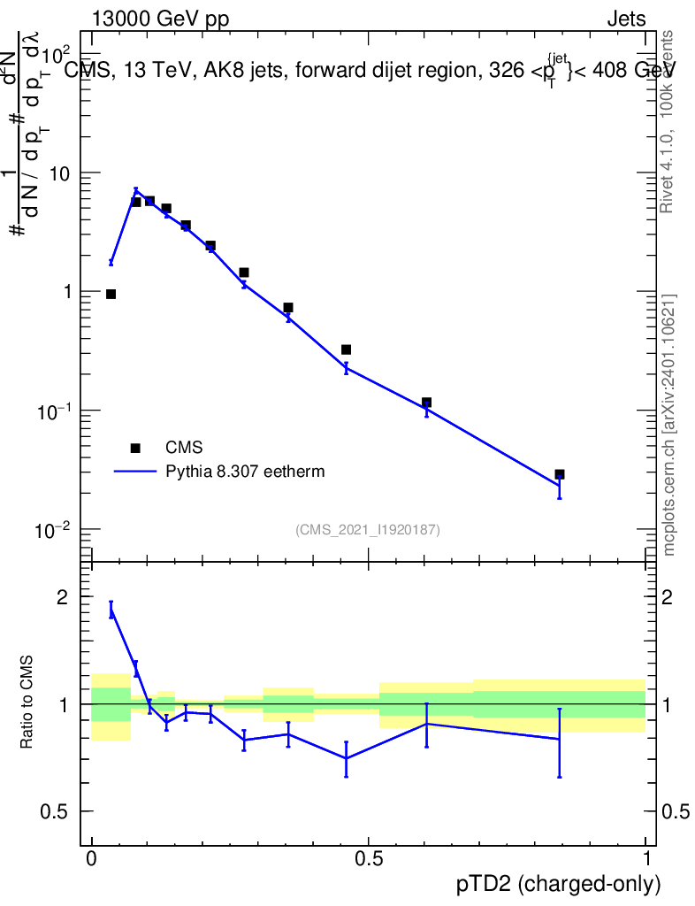 Lines: data, pythia8 8.307 eetherm |