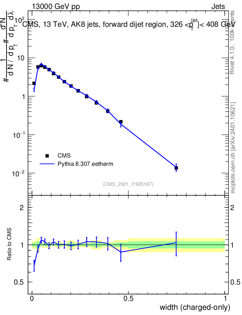 Lines: data, pythia8 8.307 eetherm |