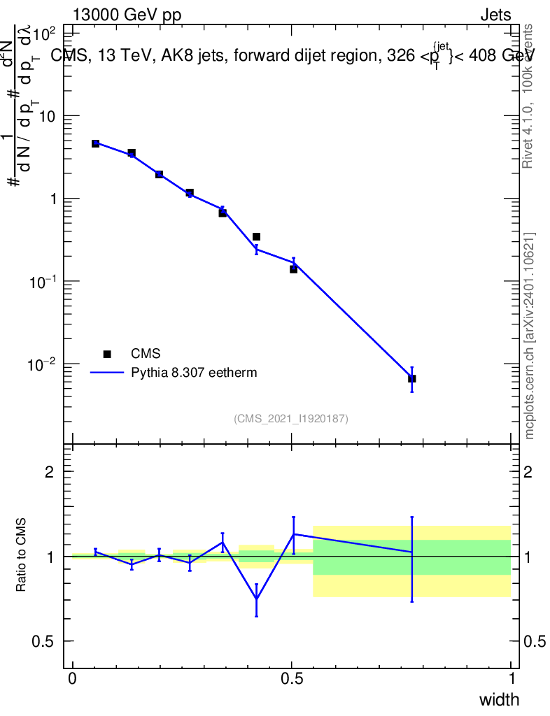 Lines: data, pythia8 8.307 eetherm |
