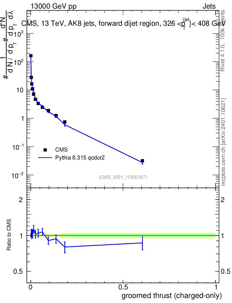 Lines: data, pythia8 8.315 qcdcr2 |