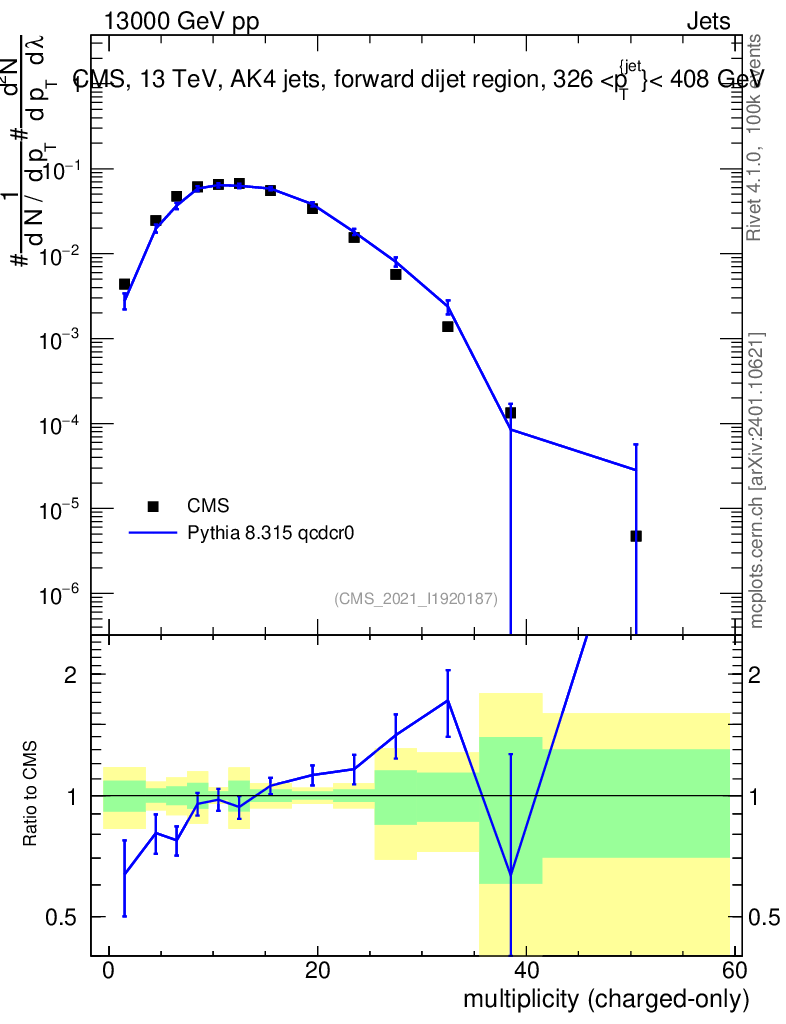 Lines: data, pythia8 8.315 qcdcr0 |