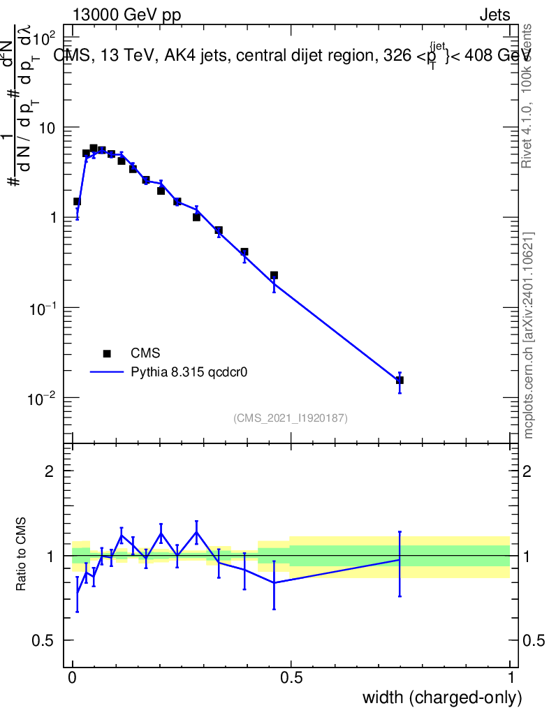 Lines: data, pythia8 8.315 qcdcr0 |