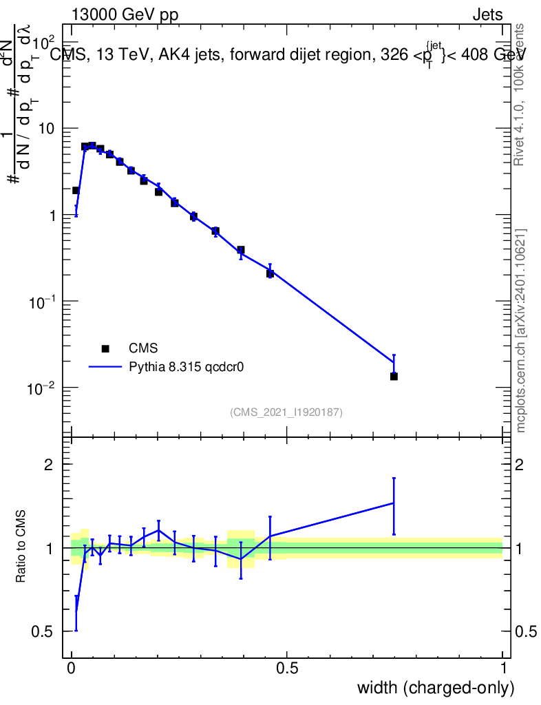 Lines: data, pythia8 8.315 qcdcr0 |