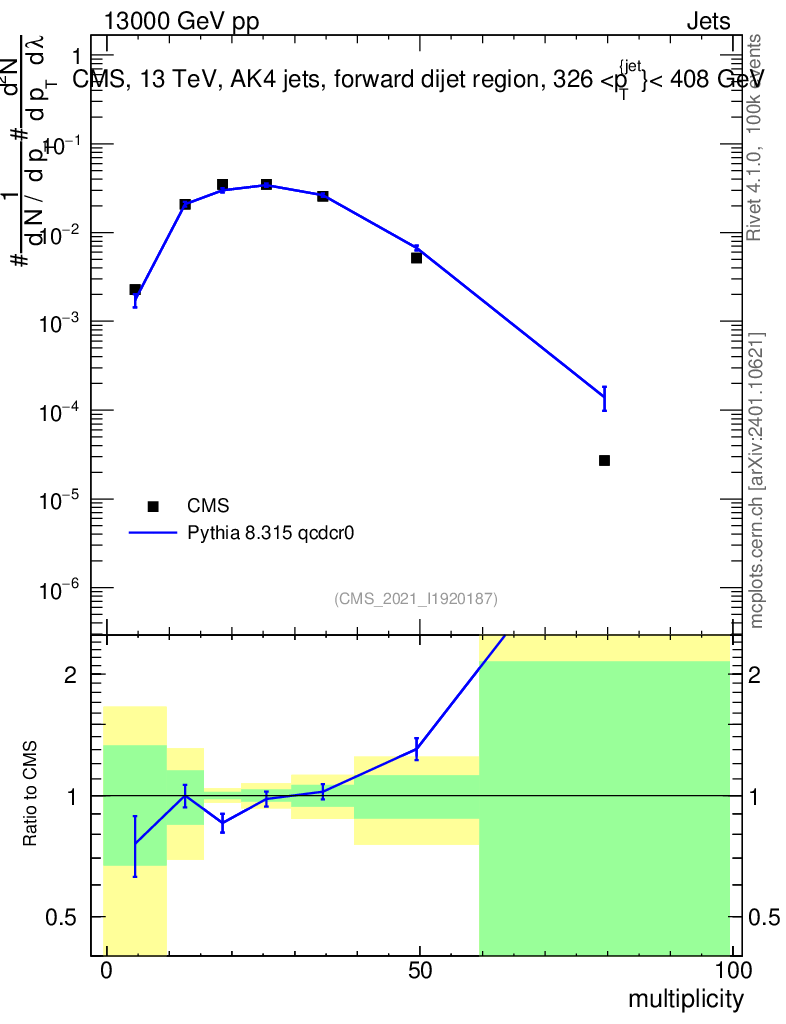Lines: data, pythia8 8.315 qcdcr0 |