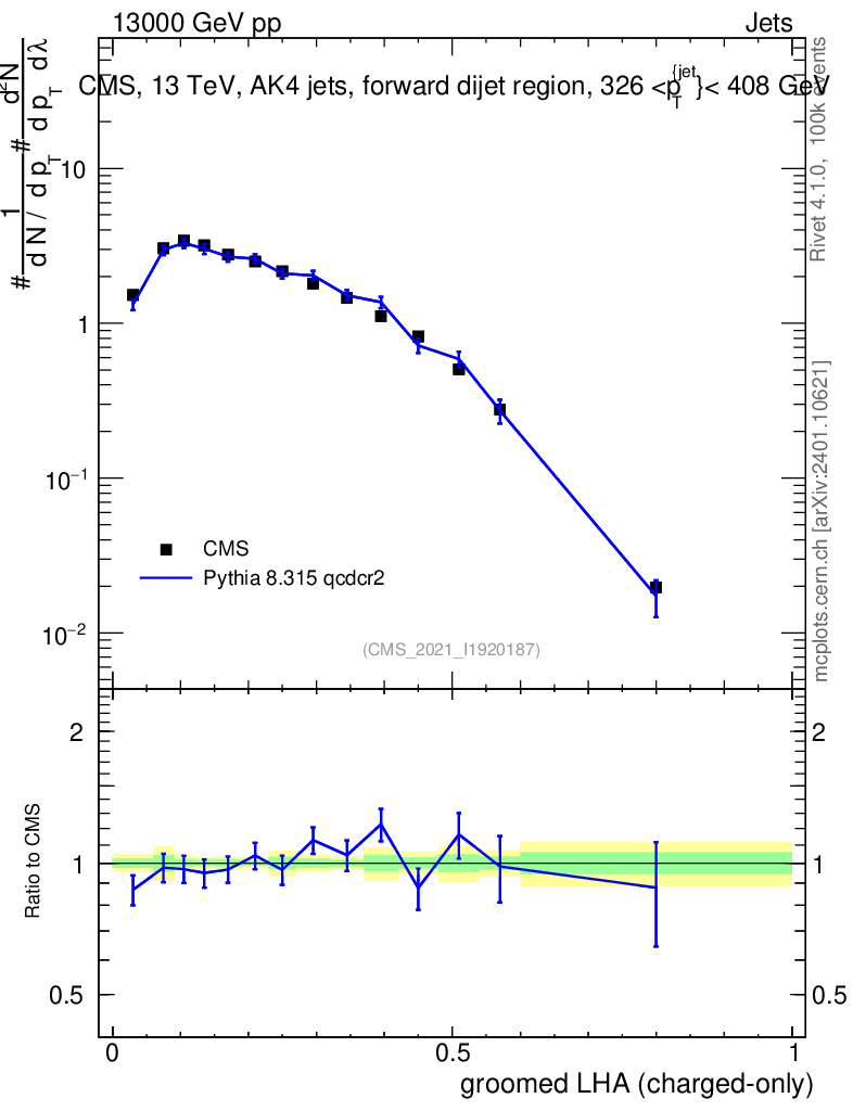 Lines: data, pythia8 8.315 qcdcr2 |