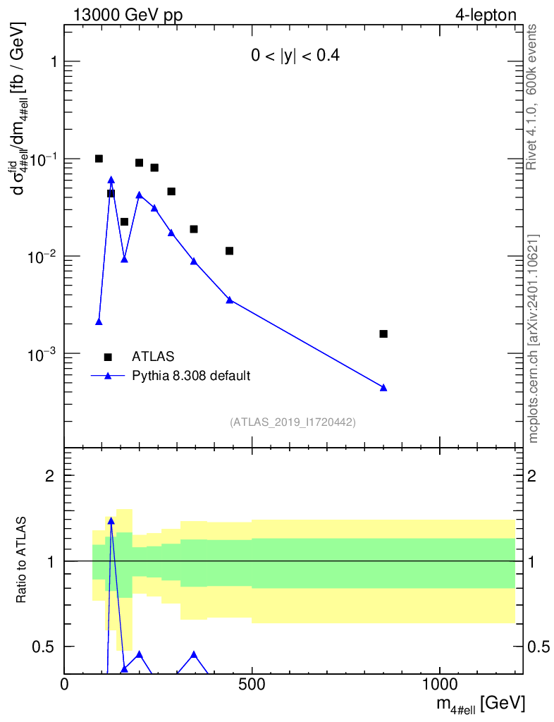 Lines: data, pythia8 8.308 default |