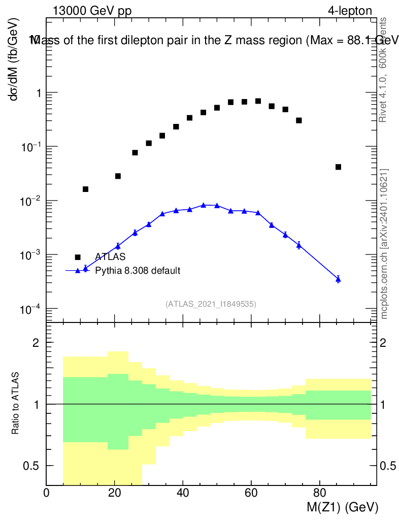 Lines: data, pythia8 8.308 default |