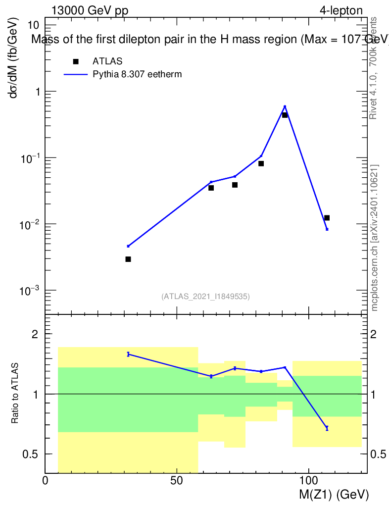 Lines: data, pythia8 8.307 eetherm |
