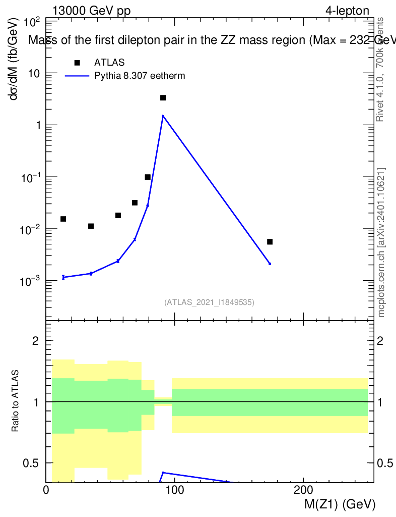 Lines: data, pythia8 8.307 eetherm |