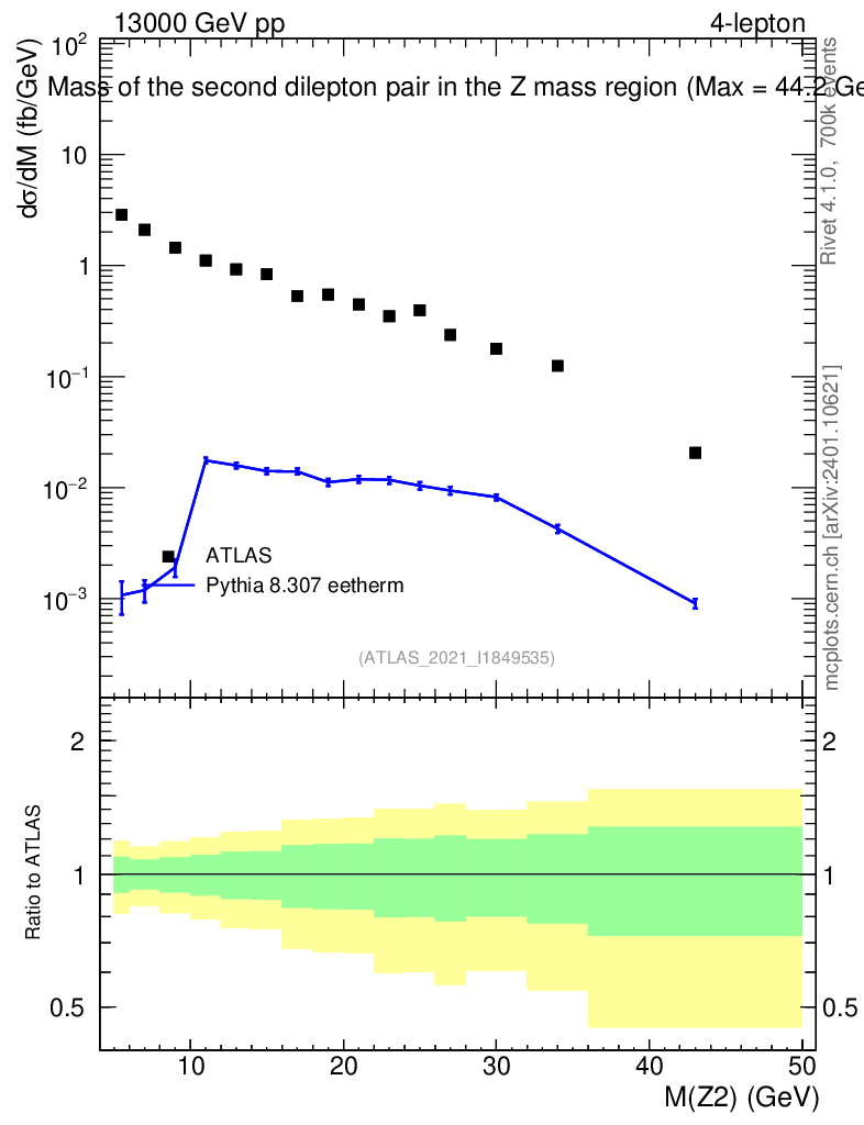Lines: data, pythia8 8.307 eetherm |