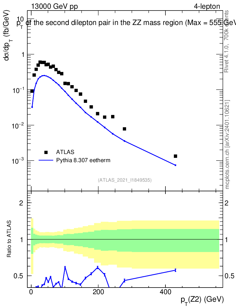 Lines: data, pythia8 8.307 eetherm |