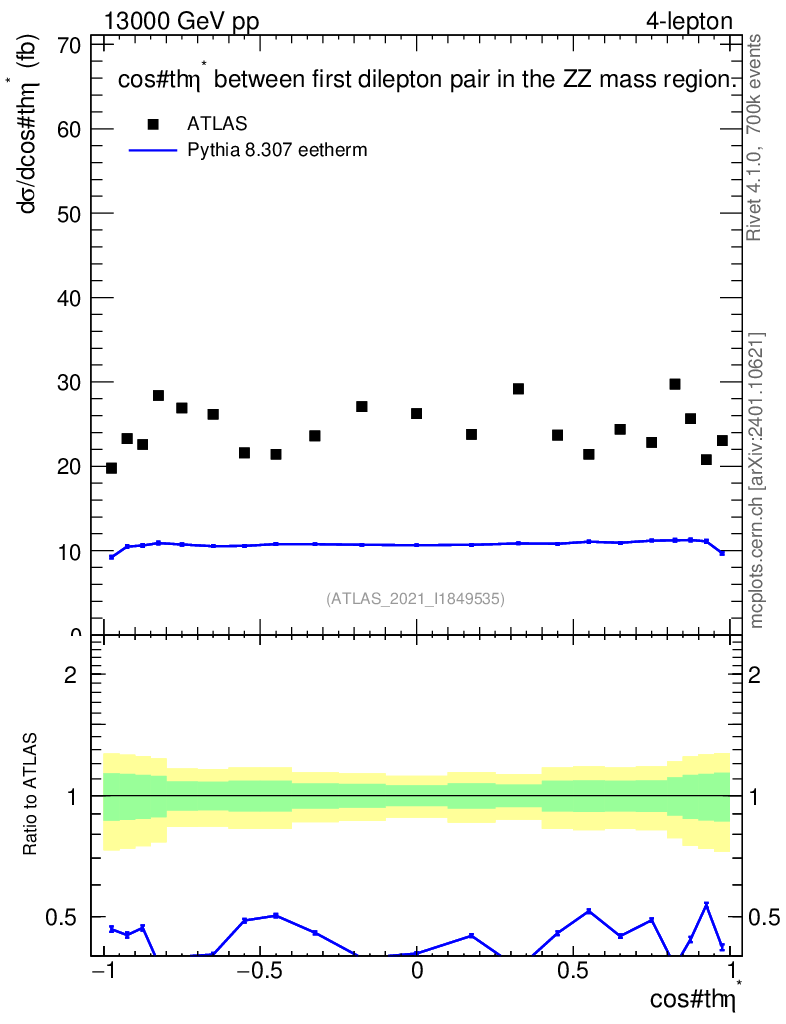 Lines: data, pythia8 8.307 eetherm |
