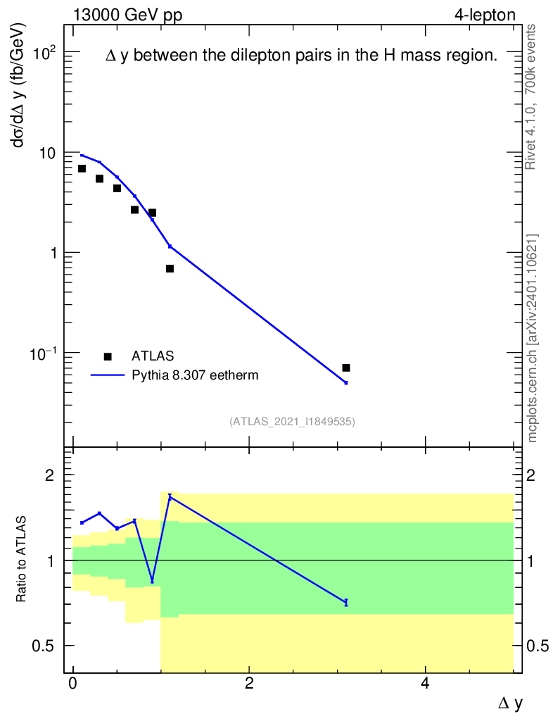 Lines: data, pythia8 8.307 eetherm |