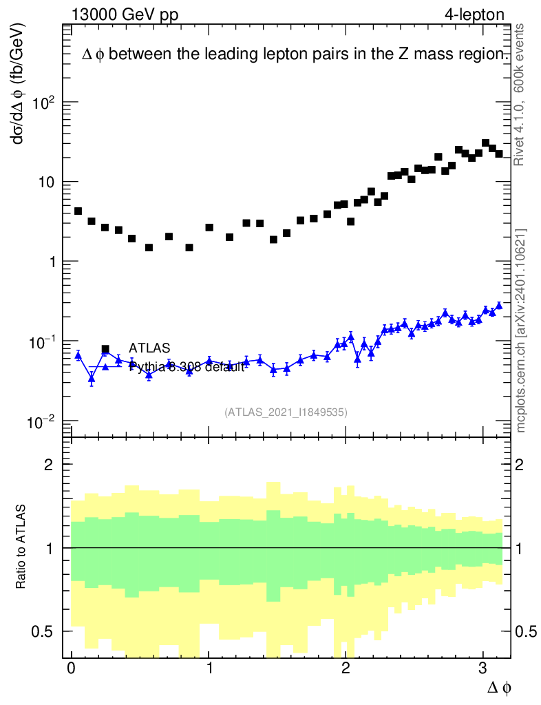 Lines: data, pythia8 8.308 default |