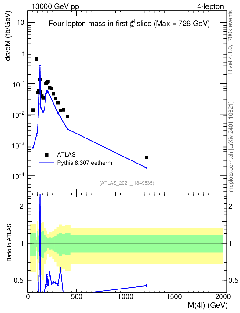 Lines: data, pythia8 8.307 eetherm |