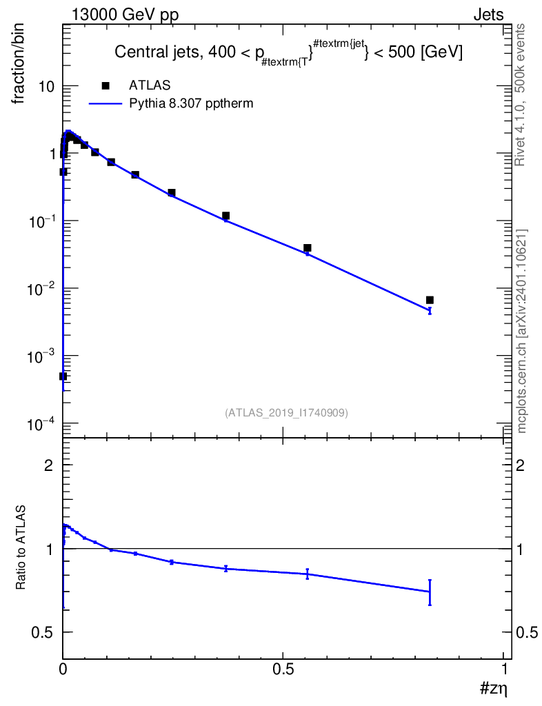 Lines: data, pythia8 8.307 pptherm |