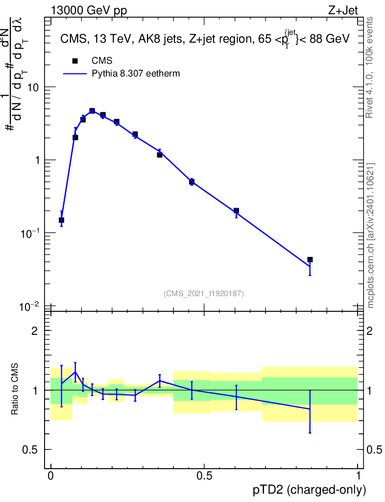 Lines: data, pythia8 8.307 eetherm |