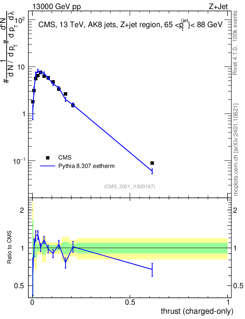 Lines: data, pythia8 8.307 eetherm |