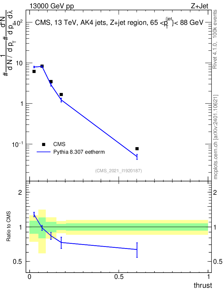 Lines: data, pythia8 8.307 eetherm |