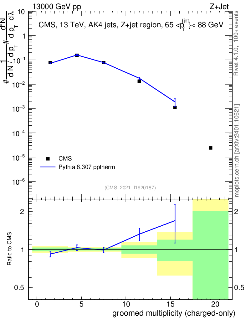 Lines: data, pythia8 8.307 pptherm |
