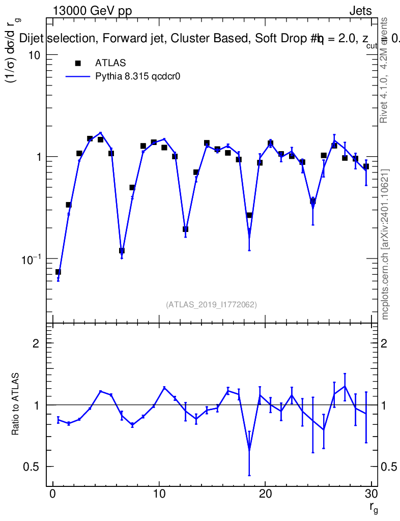 Lines: data, pythia8 8.315 qcdcr0 |