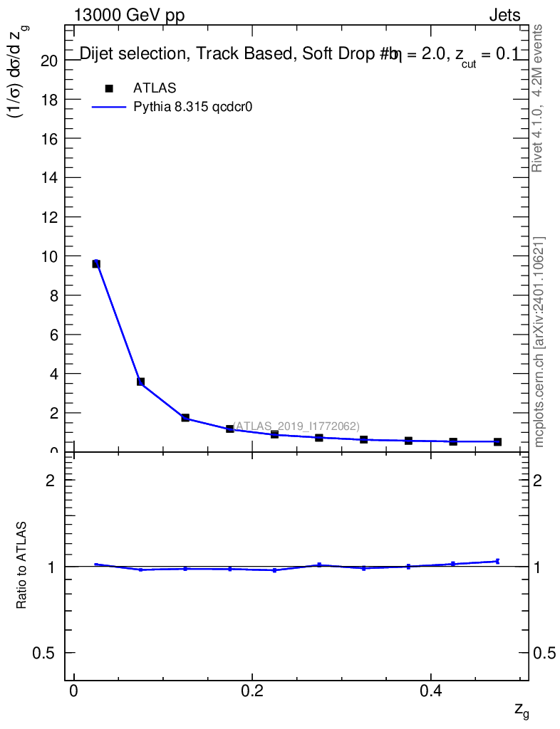 Lines: data, pythia8 8.315 qcdcr0 |