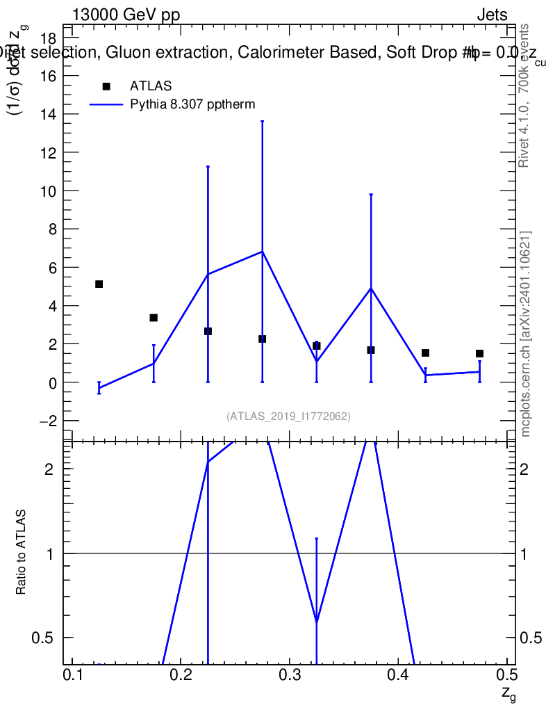 Lines: data, pythia8 8.307 pptherm |