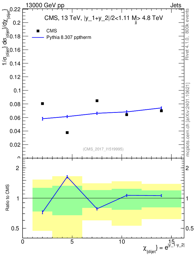 Lines: data, pythia8 8.307 pptherm |
