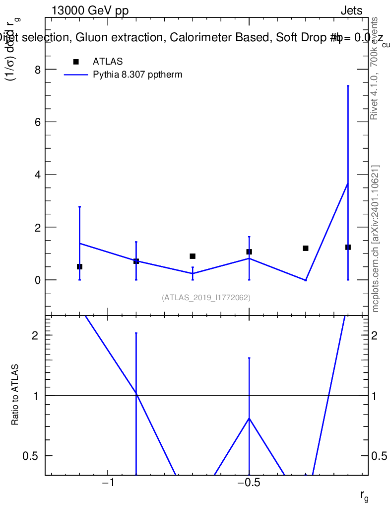 Lines: data, pythia8 8.307 pptherm |