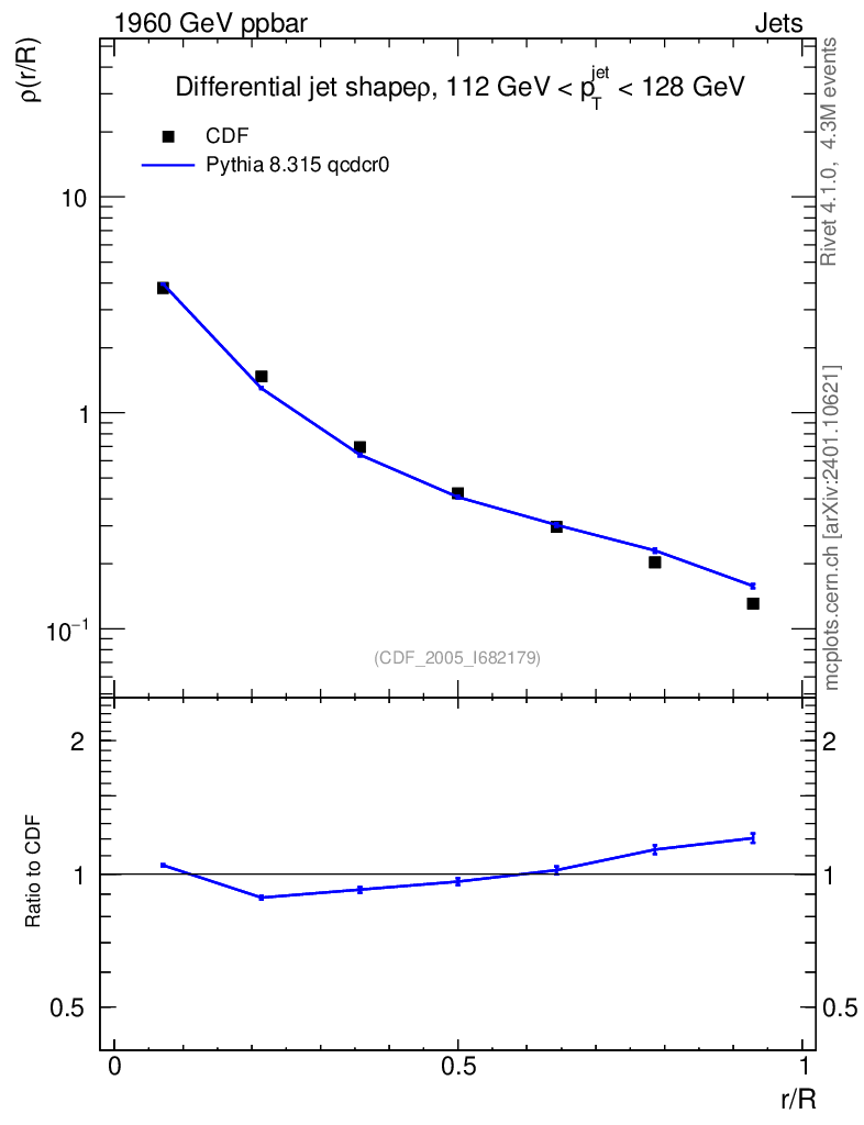 Lines: data, pythia8 8.315 qcdcr0 |