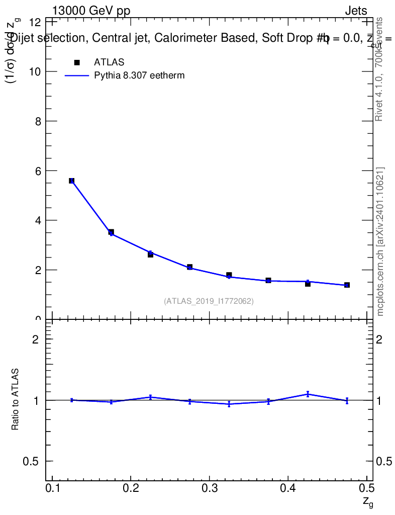Lines: data, pythia8 8.307 eetherm |