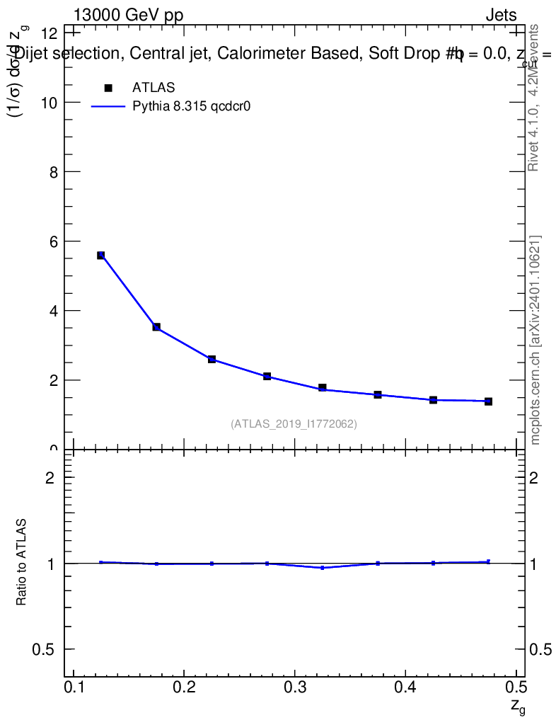 Lines: data, pythia8 8.315 qcdcr0 |
