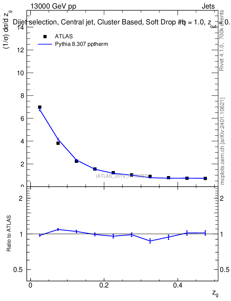 Lines: data, pythia8 8.307 pptherm |