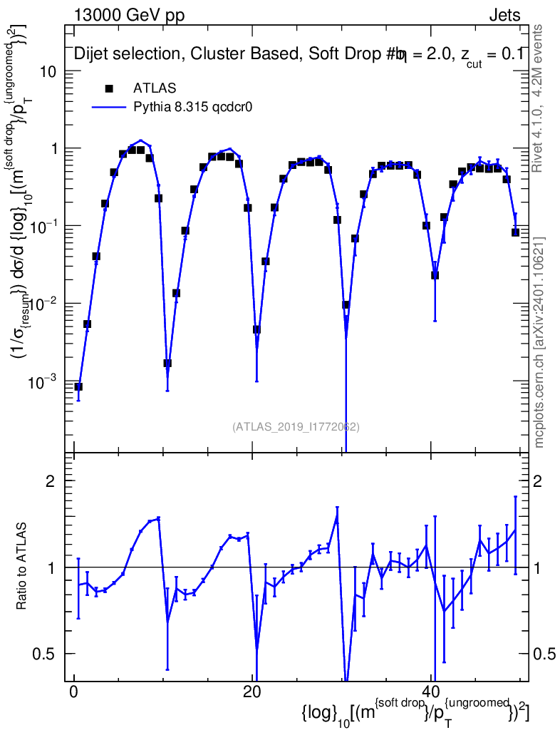 Lines: data, pythia8 8.315 qcdcr0 |
