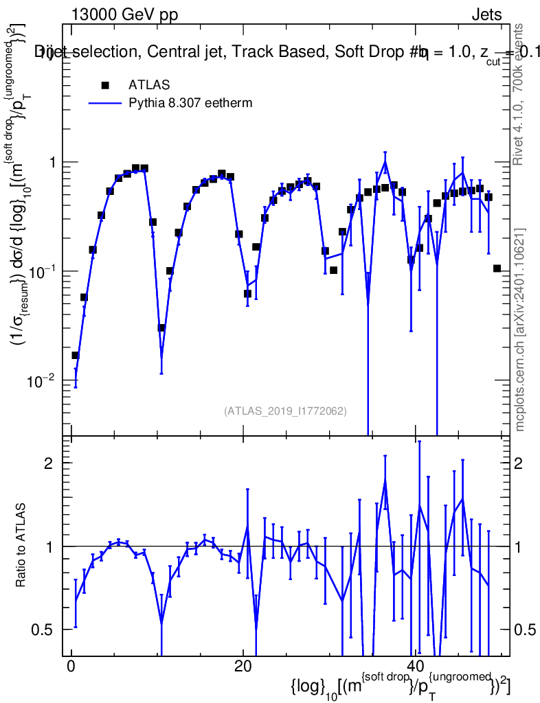 Lines: data, pythia8 8.307 eetherm |