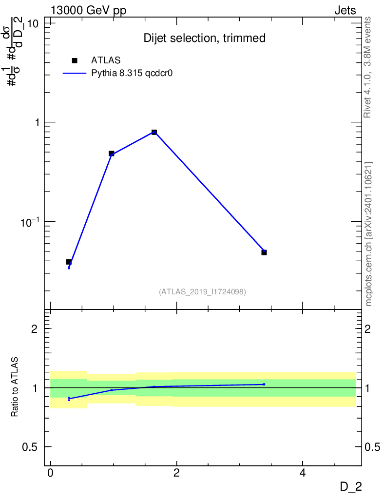 Lines: data, pythia8 8.315 qcdcr0 |