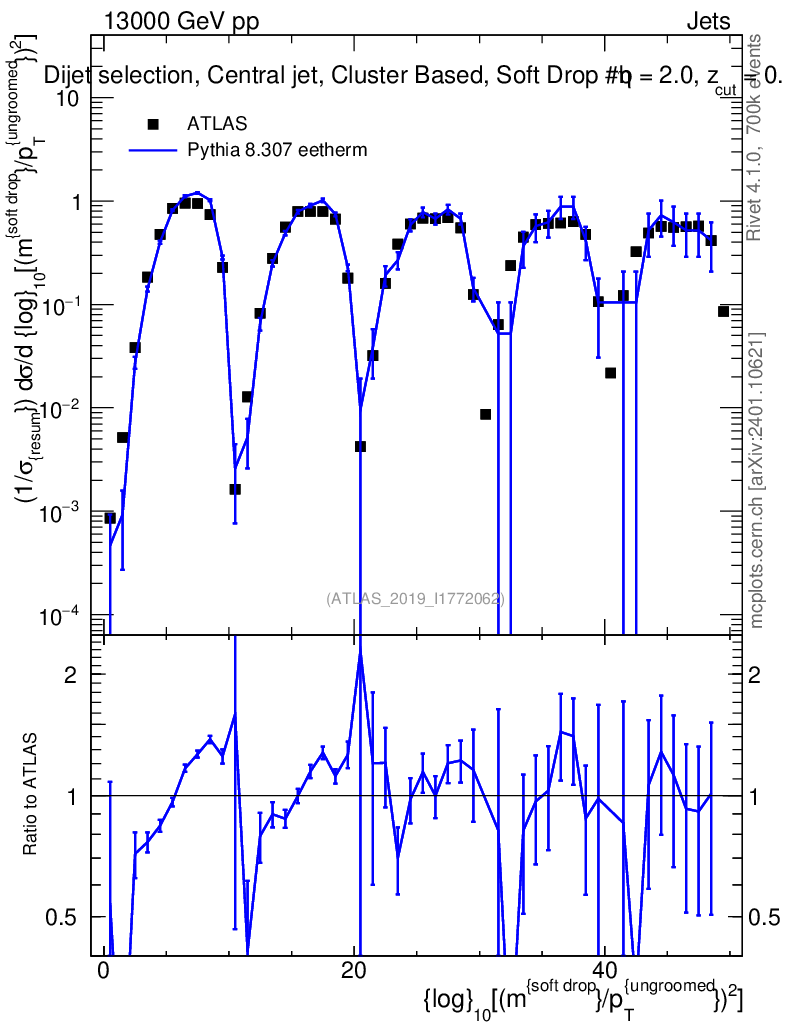 Lines: data, pythia8 8.307 eetherm |