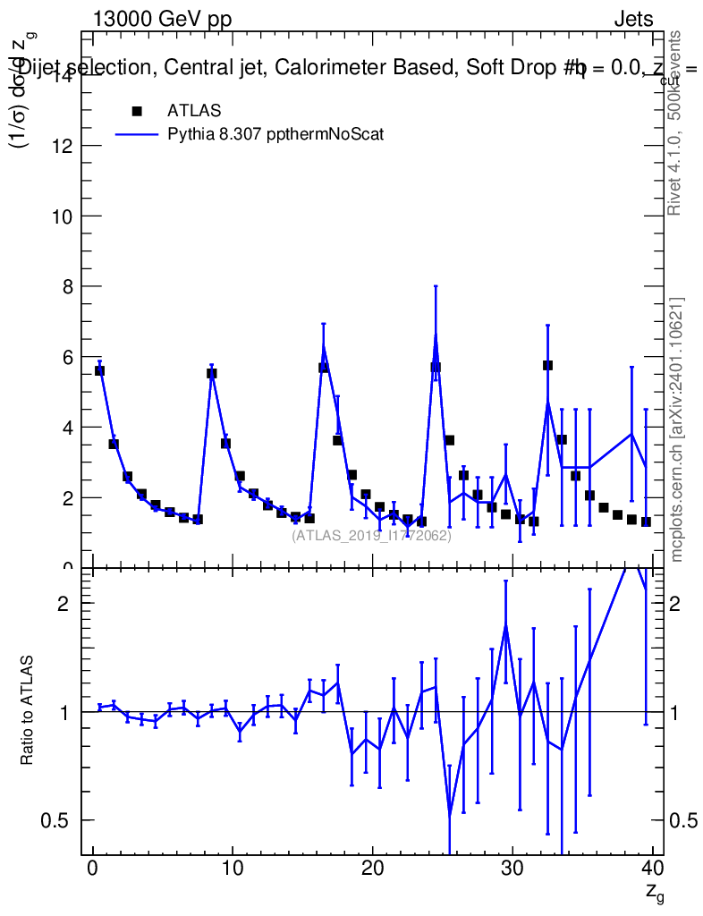 Lines: data, pythia8 8.307 ppthermNoScat |