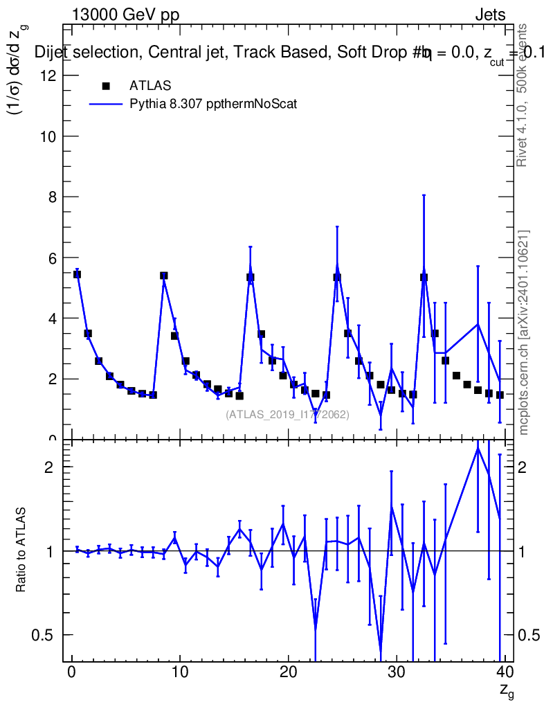 Lines: data, pythia8 8.307 ppthermNoScat |